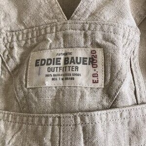 Eddie Bauer Outfitter Women's 100% Linen Crop Overalls Size Large Beige Natural