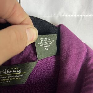 The Eddie Bauer POLARTEC Burgundy and Brown Full Zip Front Fleece Jacket is a stylish and warm outerwear piece perfect for everyday wear. Made from polyester fleece, this color block jacket offers lightweight warmth in a short length design. The full zip closure and long sleeves make it easy to layer over any outfit, while the sporty theme adds a touch of flair. This women's XL jacket is versatile for all seasons and is sure to keep you comfortable and stylish in any weather. Made in Canada by the reputable brand Eddie Bauer, this jacket is a reliable and fashionable choice for any wardrobe.