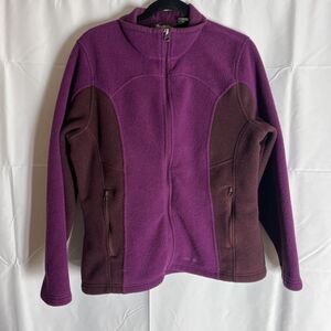 Eddie Bauer POLARTEC Burgandy and Brown Full Zip Front Fleece Jacket Wms X Large