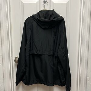Size XL, excellent used condition, bungee cord hood, elasticized long sleeves, side front zipper pocket, hood