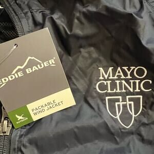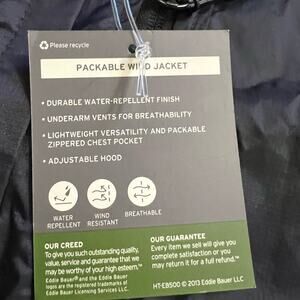 Eddie Bauer Packable Wind Jacket Mens XXL Windbreaker Full Zip Black Coat