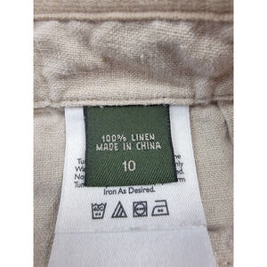 Eddie Bauer Pants Womens 10 Beige Brown Crop 100% Linen Casual Beach Vacation
