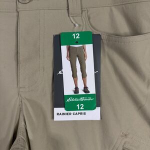 Eddie Bauer Pants Womens 12 Beige Tan Rainier Capris Lightweight Stretch NWT