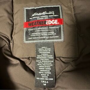 Eddie Bauer Parka Jacket Coat Weatheredge M Tall Brown Down Zip Hooded 650 Fill