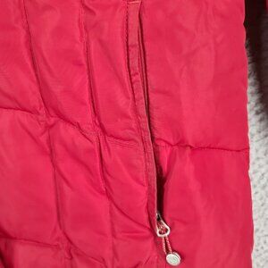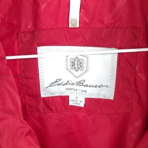 Eddie Bauer Parka Womens Small Down Puffer Hooded Faux Fur Jacket Red EB 650