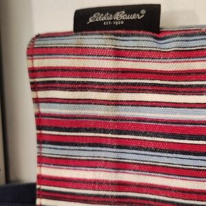 Eddie Bauer Patriotic red white and blue striped canvas small tote purse bag