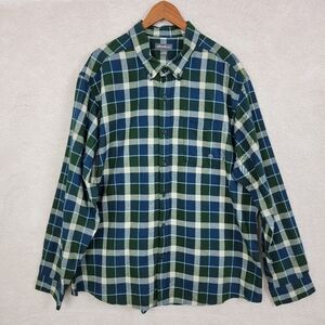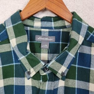 Eddie Bauer Peacock Blue Green Plaid Field Flannel Button Down Shirt Sz XXL NEW