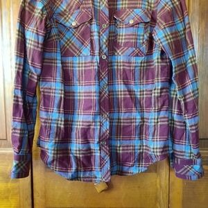 Eddie Bauer & Pendleton 100% wool burgundy plaid button down shirt