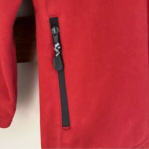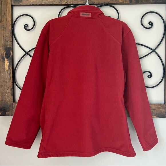 Performance weather element fleece jacket by Eddie Bauer in a rich burgundy red color, great for hiking, camping or everyday wear.