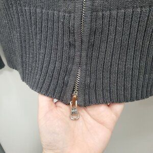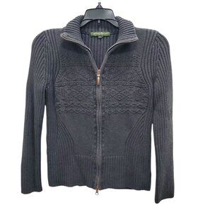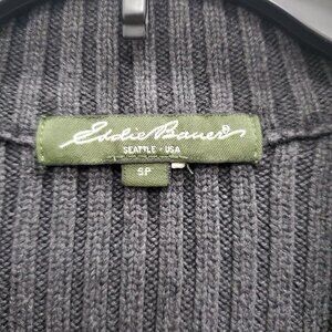 Eddie Bauer Petite Charcoal Textured Double Zip Up Cable Knit Cardigan USA SP
