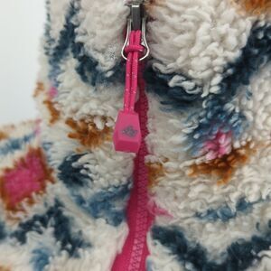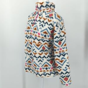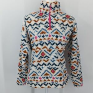 Eddie Bauer Pink Blue Aztec Tribal Sherpa Teddy 1/4 Zip Jacket Sweater X-Large