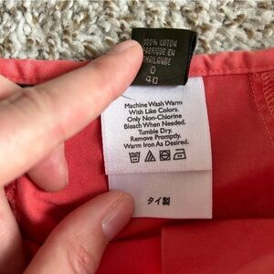 🦋 Eddie Bauer Pink Coral Front Pleated Cotton Midi Skirt Size 10 12
