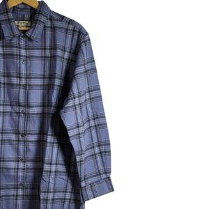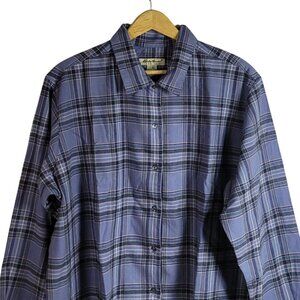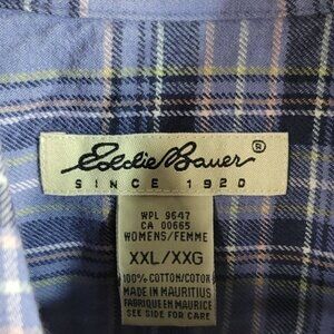 Eddie Bauer Plaid Button Front Top Blue XXL Collar Long Sleeves 100% Cotton NWOT