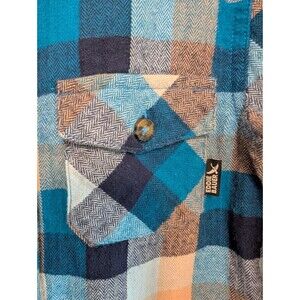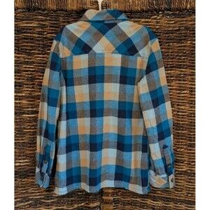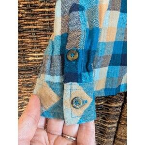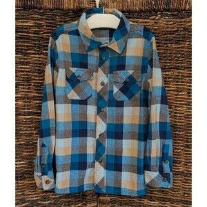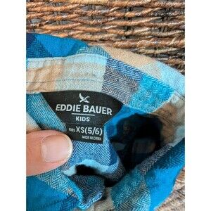 Eddie Bauer Plaid Flannel Button Up Shirt Boys XS 5/6 Blue Tan Hiking Camping