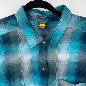Eddie Bauer Plaid Flannel Button Up Shirt Womens 2XL Green Gray Gorpcore Outdoor