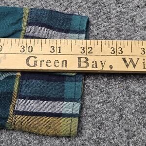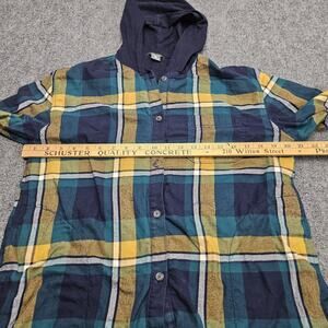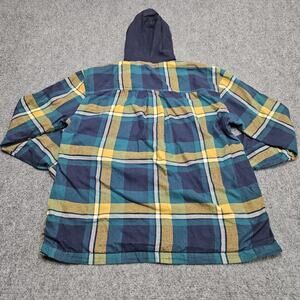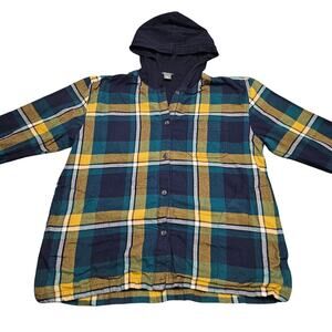 Eddie Bauer Plaid Flannel Hoodie Shirt M Womens Blue Green Yellow Cotton Casual