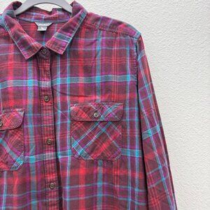 Eddie Bauer Plaid Flannel Long Sleeve Button Up Shirt Womens size 2XL Tall T2XL
