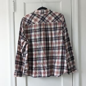 Eddie Bauer button up flannel shirt. Pink & purple plaid pattern, Good, used condition. Plus size 2XL.