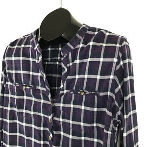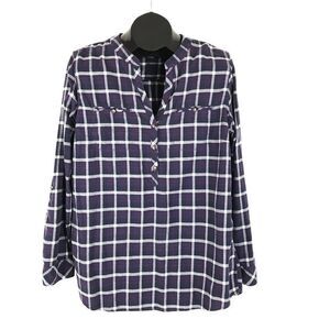 Eddie Bauer Plaid Popover Top Women's XL Roll Tab Woven 100% Cotton Outdoor