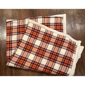 Eddie Bauer Plaid Sherpa Throw Blanket 50" X 60" Tan & Orange Cozy Reversible So