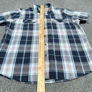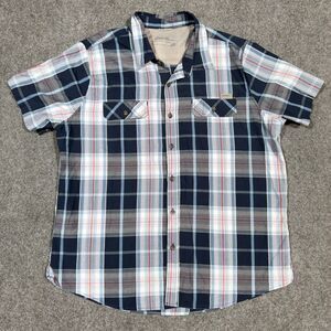 Eddie Bauer Plaid Short Sleeve Buttom Blue Red White Outdoor Shirt Men's XL