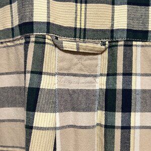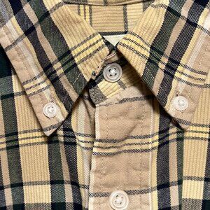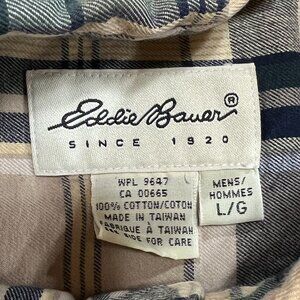 Eddie Bauer Plaid Tan Blue Green Button Up Short Sleeve Men's Size Large