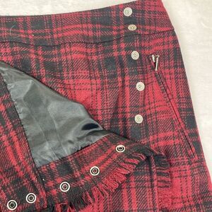 Eddie Bauer Plaid Wrap Skirt Red Black Wool Blend Fringe Size 4