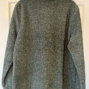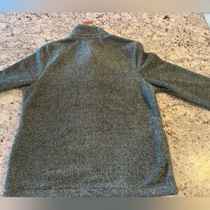 This Eddie Bauer sweatshirt features a comfortable quarter-zip design with a stand-up collar and large pockets. Made from soft fleece material, it offers a relaxed fit perfect for casual outings.