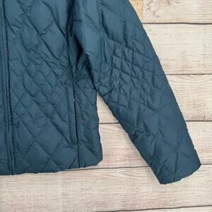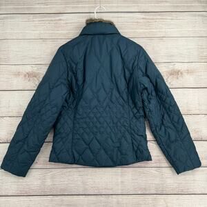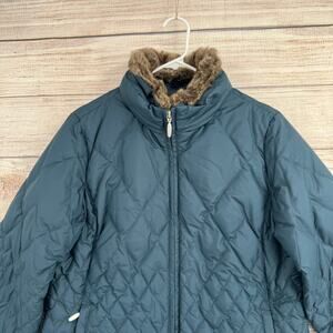 Item: Eddie Bauer Premium Goose Down Quilted Jacket Womens Medium Green Faux Fur Trim
