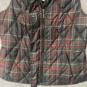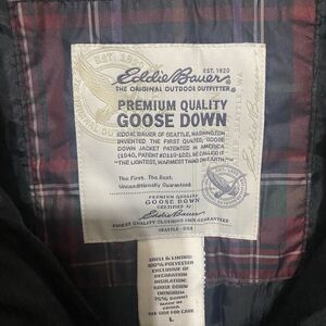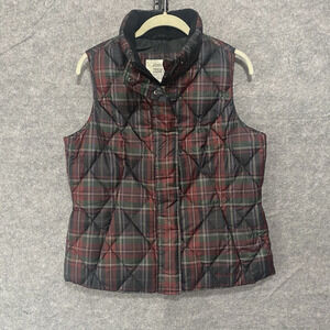 Eddie Bauer Premium Goose Down Vest Womens Sz L Black Tartan Plaid Pockets