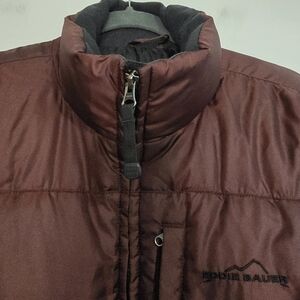 Eddie Bauer Premium Quality Goose Down Funnel Neck Puffer Jacket Burgandy Red.