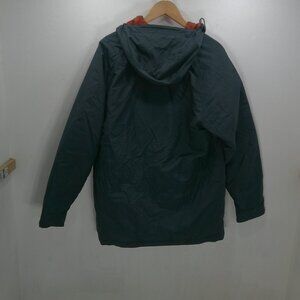 ACCENTS: Navy, Full zip with buttons. Hooded, Bungee cord on the hood, Velcro closure on the pockets.