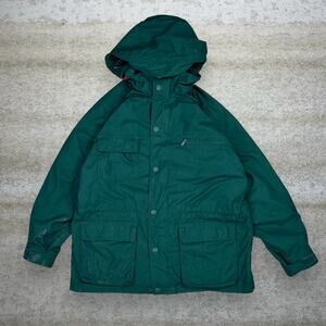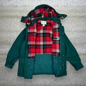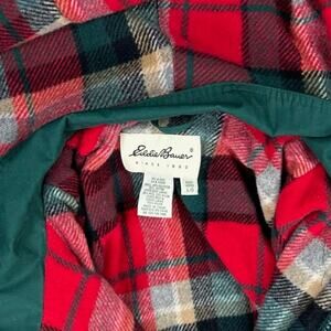 Eddie Bauer Puffer Jacket Forest Green Flannel Lined Full Zip