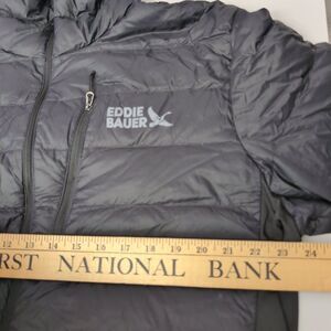 Eddie Bauer Puffer Jacket Men's Size XL Black Lightweight 550 Down Hoodie Jacket