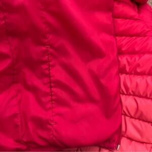 This Eddie Bauer Puffer Reversible Ombre Pink Duck Down Full Zip Jacket in size 10/12 is a stylish and practical outerwear option for girls. Made with polyester outer shell material and lined with 100% polyester, this mid-length jacket features long sleeves and a zip closure for easy wear. The ombré pink color and zipper accents add a trendy touch, while the reversible feature allows for versatile styling options. Ideal for winter, fall, and spring seasons, this jacket is perfect for activities like walking, school, and hiking, providing both comfort and warmth.