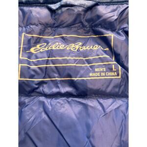 Eddie Bauer Puffer Vest Men's Large Blue Quilted Down Full Zip Outdoor Hiking