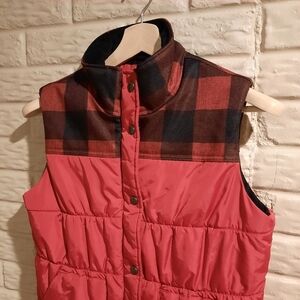 Eddie Bauer Puffer Vest Womens Size Medium Red Buffalo Plaid