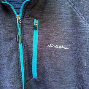 Eddie Bauer Pullover Mens XL Blue Active Fit Free Heat 1/4 Zip Hiking