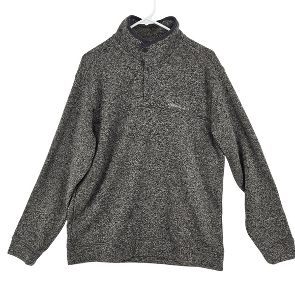 Eddie Bauer Pullover Sweater Mens XL Gray Radiator Fleece Mock Neck Snap Outdoor