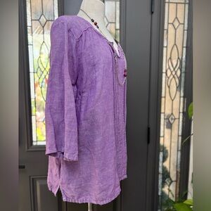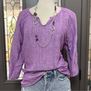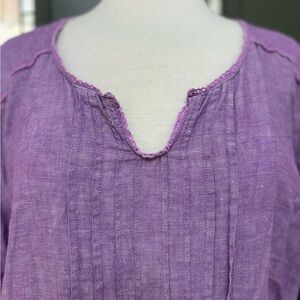 Eddie Bauer Purple 3/4 Sleeve Linen Blend Pintuck Tunic Top Size 2X
