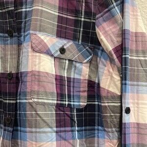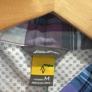 Eddie Bauer Purple and Blue Plaid Button Down Outdoor Shirt Size Medium