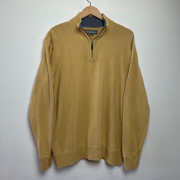 Eddie Bauer Quarter 1/4 Zip Sweater Mens TXL Yellow Cotton Preppy Quiet Luxury