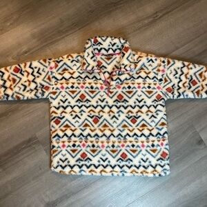 Eddie Bauer Quarter Zip Aztec Print Plush Pullover