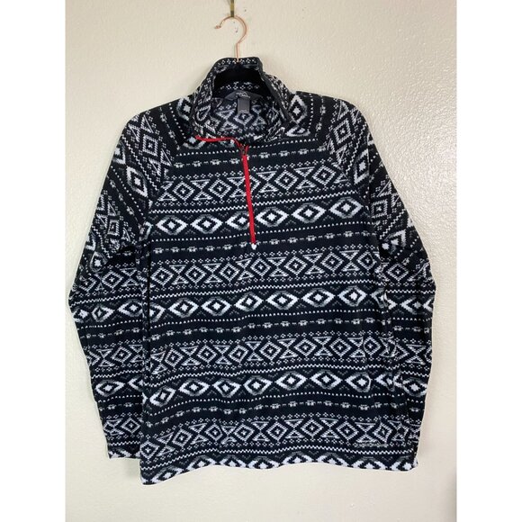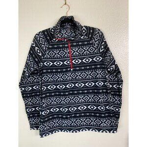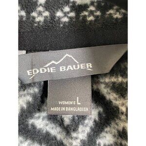 Eddie Bauer Quarter Zip Pullover Fleece Nordic Sweater Womens Size Large Aztec Black White