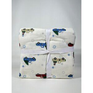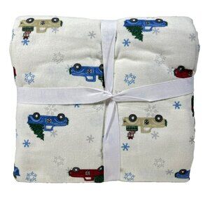Eddie Bauer Queen Flannel Sheet Set Winter Outing Trucks With Trees Print