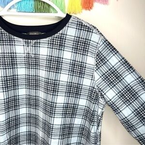 Features: Easy, A generous fit. Relaxed on body. Crewneck, soft to the touch, plaid flannel print