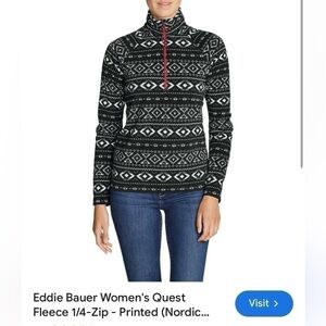 Eddie Bauer Quest fleece quarter zip pull over aztec print black & white XL