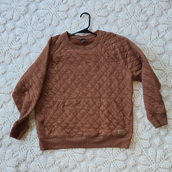 Quilted design with a cozy feel. Perfect for casual wear. Features a front pocket. Worn once.
