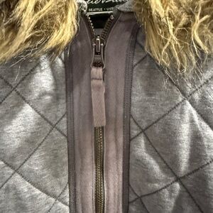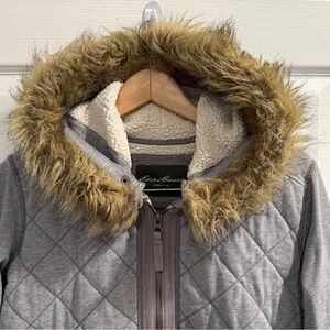 Eddie Bauer Quilted Gray Eskimo Jacket w Removeable Faux Fur Accent