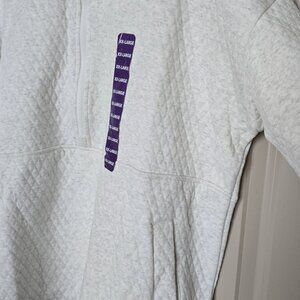 A light heathered Grey color. Almost ivory with gray in it. Brand new with tags. Front pockets connect making it a kangaroo pouch that's hidden. Can be used as a light jacket or a sweat shirt. Slightly rounded bottom